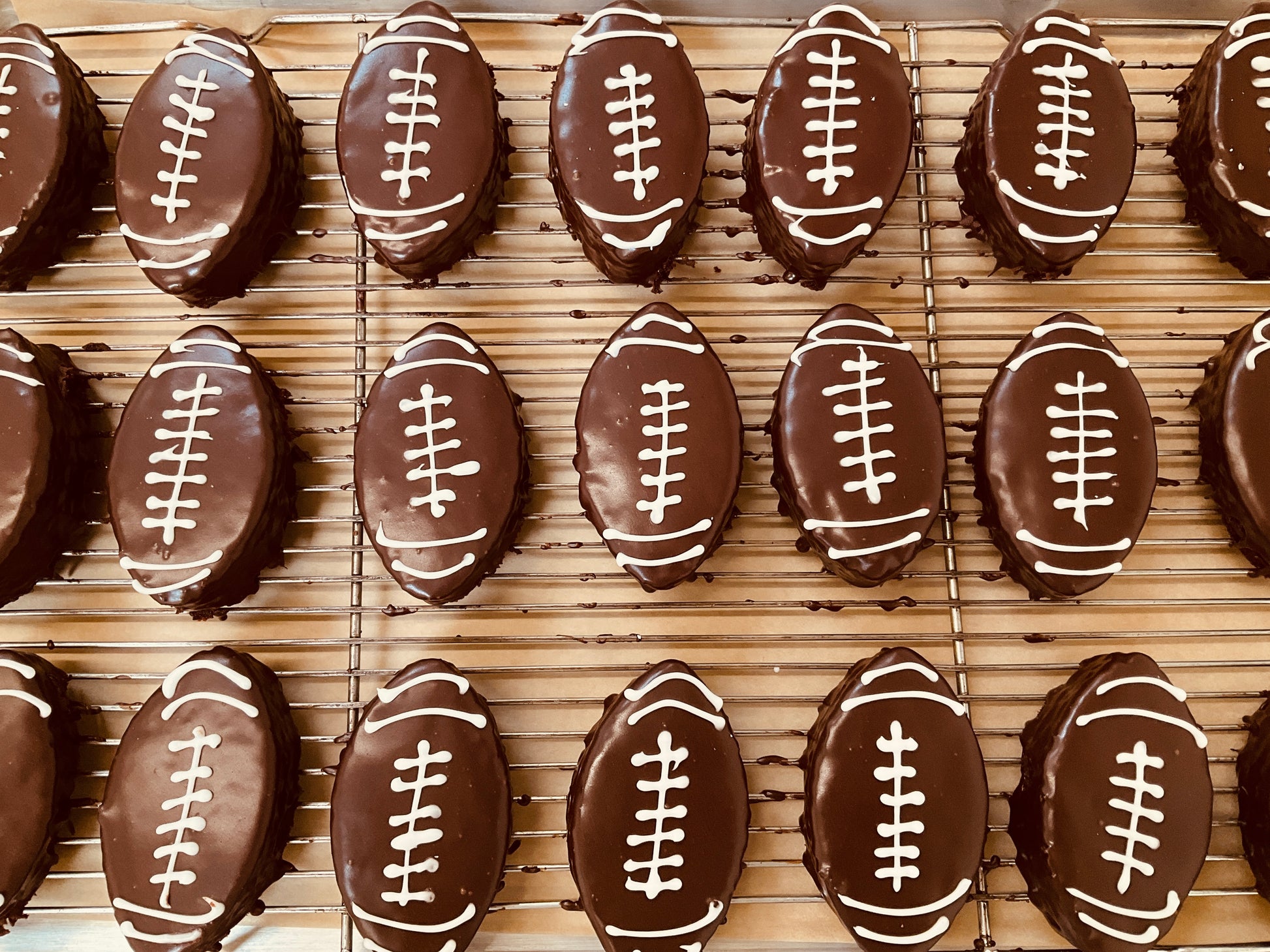 In honor of Super Bowl Sunday, we're baking up these rich delicious chocolate cakes for your weekend festivities. Shaped like a football and dressed with a smooth chocolate ganache, these cakes are sure to be a crowd favorite. These cakes are sold in 2-packs.